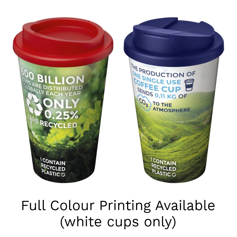 Yes, full colour printing all the way round is available. Just choose “Full Colour Wrap” from the Printing to Cup options. Note, you must choose a white cup for this option to be available.