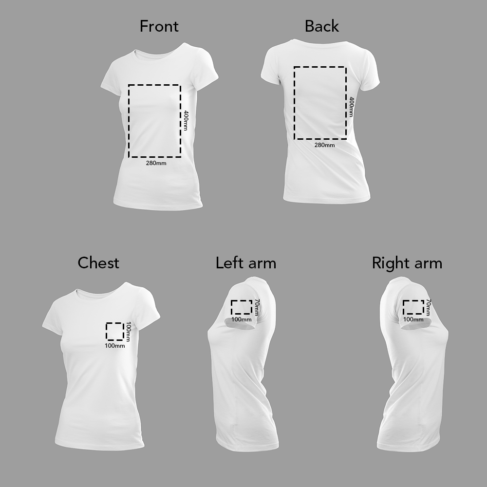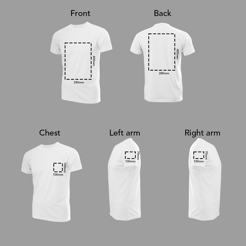 Digital transfer is a full colour process, which prints using cyan, magenta, yellow and black inks onto a transfer sheet. This is then heat pressed onto the shirts to transfer the image onto them. It allows for high quality images in a much wider range of colours and is ideal for detailed images and small text.