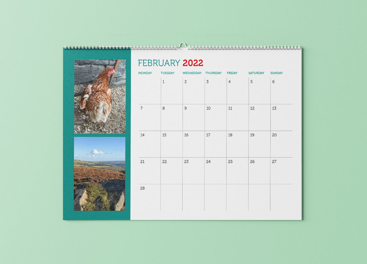 Our wire-bound calendars typically have a 4-10 business day turnaround, depending on order size.